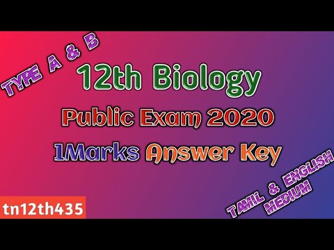 12th Biology Public Exam 2020 1Marks Answer Key [Bot+Zoo] (Type A & B) (Tamil & English Medium) [Material Code:tn12th435]